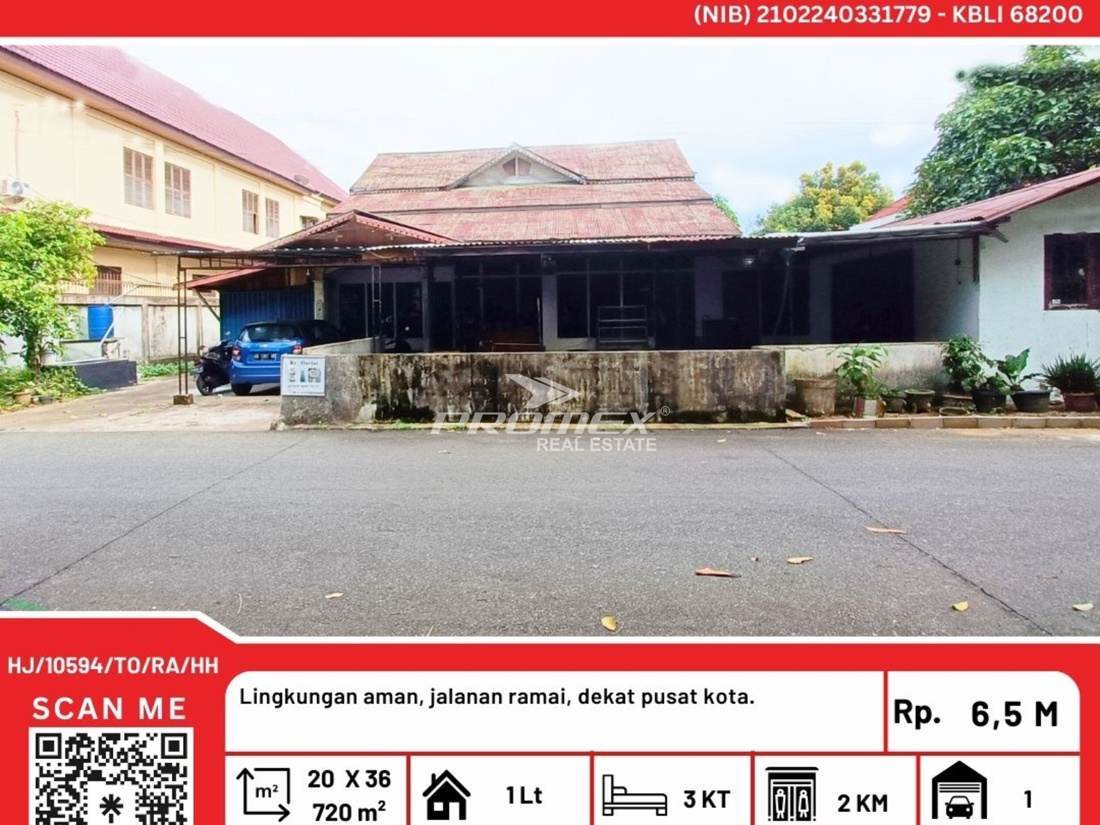 🏡 Rumah Dijual Luas 720 m² di Jl. M Syafei, Pontianak Kota – Rp 6,5 Miliar\r\n\r\nCari rumah dengan lokasi strategis, luas, dan nilai investasi tinggi? Inilah pilihan tepat untuk Anda!\r\n\r\n📍 Lokasi: Jl. M Syafei, Pontianak Kota\r\n✅ Dekat pusat kota\r\n✅ Lingkungan aman & jalanan ramai\r\n✅ Cocok untuk hunian maupun usaha\r\n\r\nSpesifikasi Properti:\r\n\r\nLuas tanah: 20 x 36 m (720 m²)\r\n\r\nLuas bangunan: ± 100 m²\r\n\r\n1 lantai\r\n\r\n3 kamar tidur\r\n\r\n2 kamar mandi\r\n\r\nGarasi 1 mobil\r\n\r\nSumber air: PDAM\r\n\r\nListrik: 1.300 watt\r\n\r\nSertifikat: SHM\r\n\r\n💰 Harga: Rp 6,5 Miliar\r\n\r\nProperti ini menawarkan kombinasi sempurna antara kenyamanan tinggal dan potensi komersial. Sangat cocok untuk rumah tinggal keluarga besar, kos, atau dikembangkan menjadi usaha.