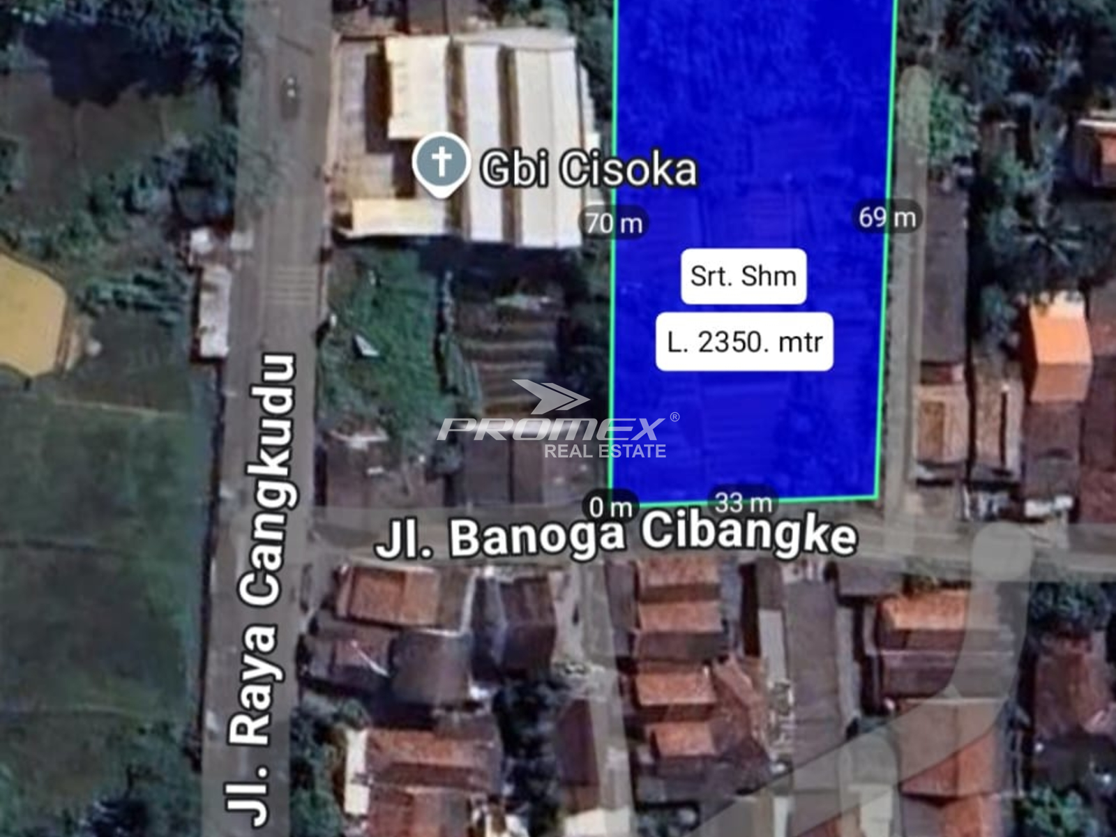 Lahan berada tepat di sisi jalan utama (Jl. Banoga Cibangke) dengan aksesibilitas prima menuju pusat bisnis dan transportasi.