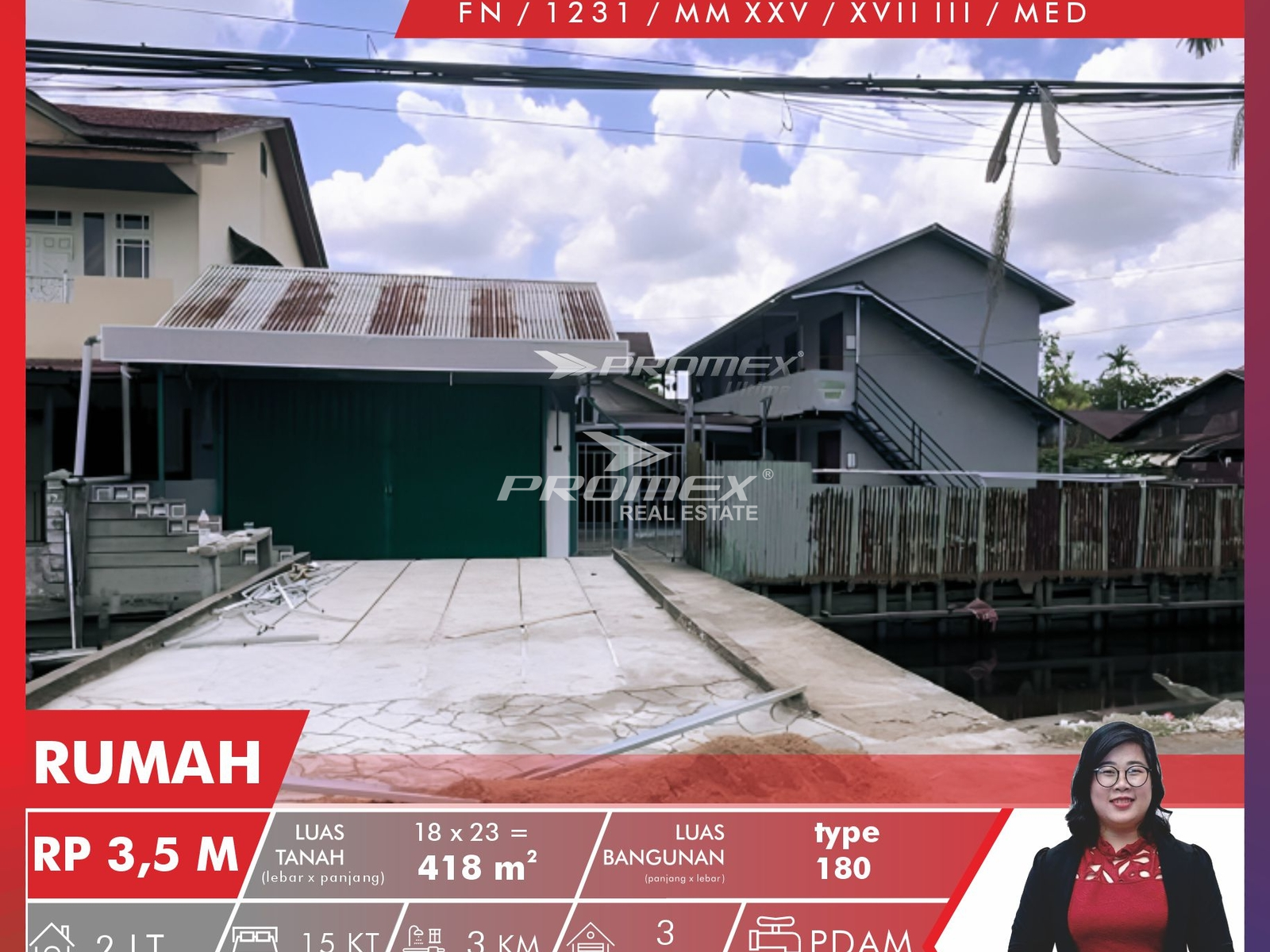 | Luas Bangunan | 180 m2 | Listrik | 2200 |